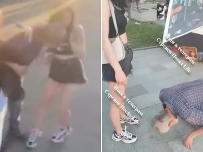 En Rusia, se produjo un incidente en el que un alegre anciano succionó repentinamente los pechos de una colegiala que se estaba haciendo selfies en la calle.