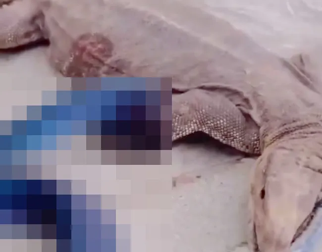 Un dragón de Komodo que intentaba comerse una serpiente marina altamente venenosa encontró la muerte instantánea… entre otros.