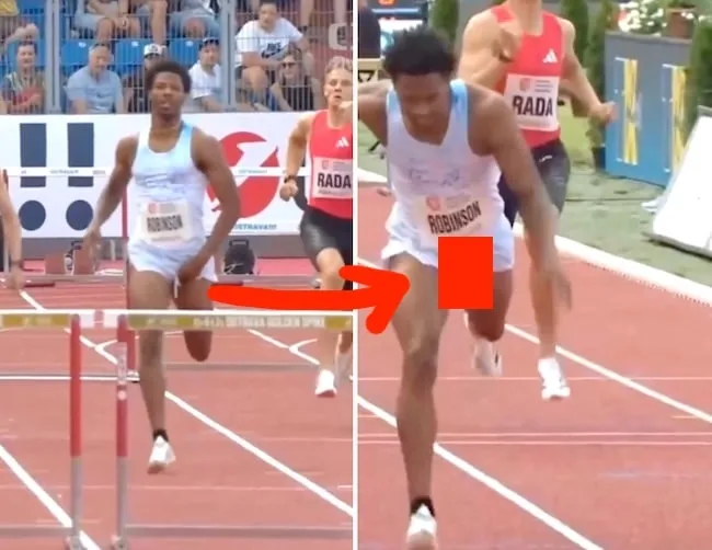 Un vídeo de un atleta que ganó el primer puesto en la final masculina de 400 metros vallas en una competición de atletismo celebrada en la República Checa, en el que se veía su pene a través de un hueco en sus pantalones cortos durante la retransmisión, parece estar causando revuelo en todo el mundo.