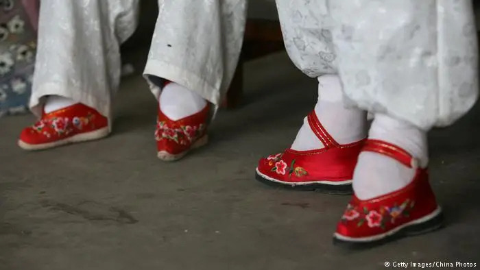 Cuanto más pequeños fueran los pies, mejor… Una costumbre que consistía en vendar los pies de las mujeres con tela o materiales similares para deformarlos y reducirlos de tamaño.[11]imágenes