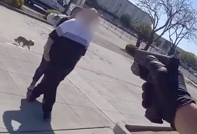 Impactante momento en Estados Unidos en el que una delincuente que retenía a un hombre como rehén con un cuchillo recibe un disparo en la cabeza con una pistola por parte de un agente de policía que responde y muere en el acto.