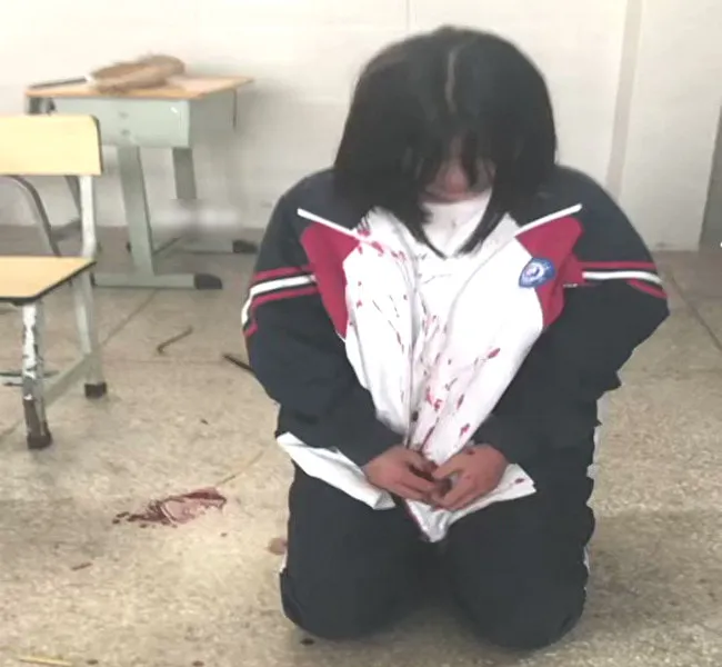 Después de clase, sus compañeros la encerraron y la acosaron hasta dejarle la cabeza, el uniforme y el suelo del aula cubiertos de sangre.