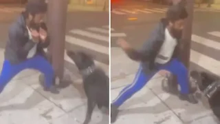 En Estados Unidos, un vídeo en el que se ve cómo un delincuente que maltrataba a un perro en la calle recibe su merecido...